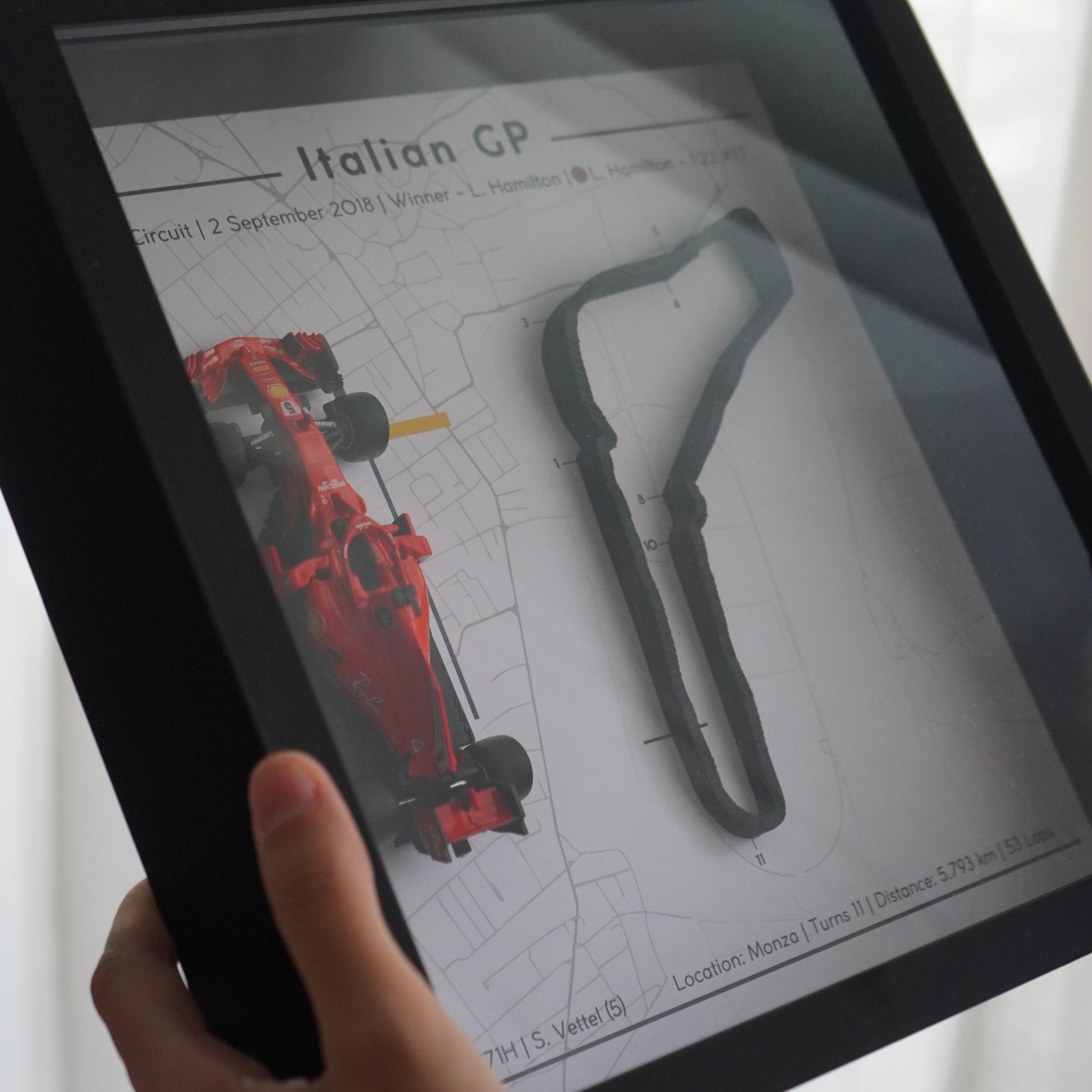 3D Printed Track with Real Elevation: Feel the curves and elevation of the iconic circuits, recreated with stunning accuracy.
